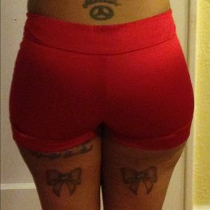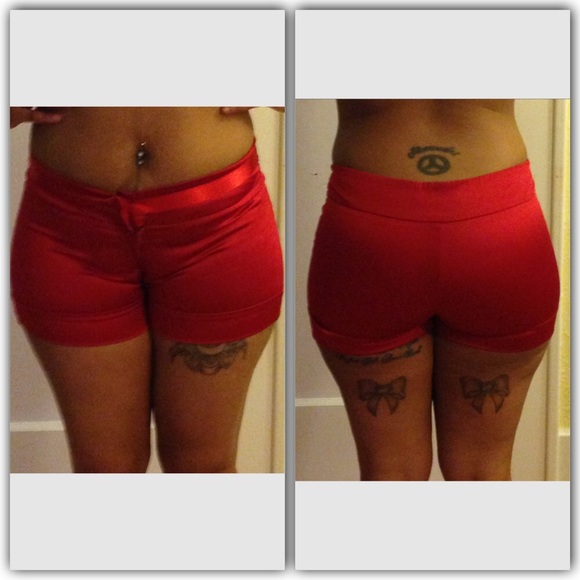Deep pure red satin style shorts. Polyester and cotton blend shorts with zipper. True to size. Size M. Only worn once for 4th of July.