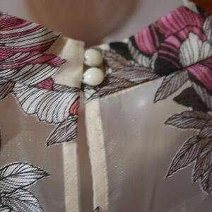 Style: Pink and cream colorway, ruffled peplum, high collar with snaps for cami, feminine silhouette