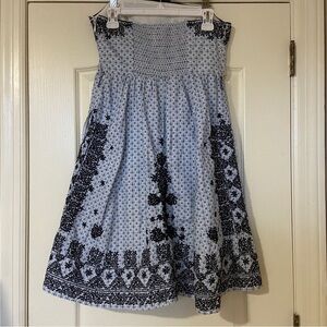 Size 10 Strapless Blue and Navy Anthropologie Moulinette Soeurs Dress in Preowned Condition - missing belt***