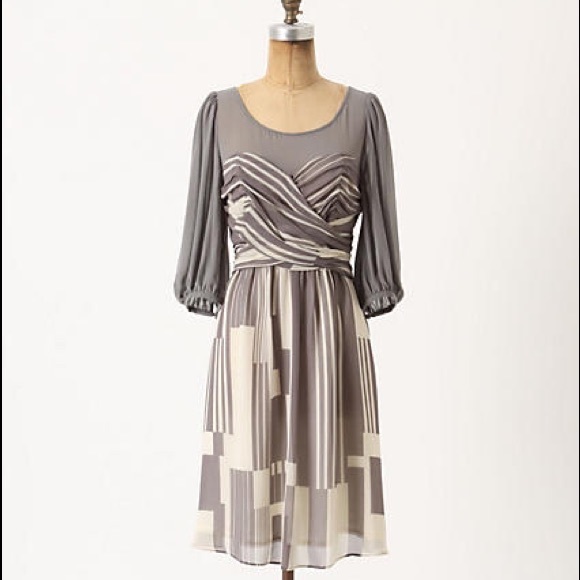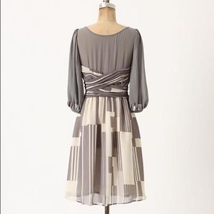 Beautiful and demure silk dress from Anthro brand Moulinette Soeurs. Size 4 Petite. 100% silk with a polyester lining. Called the "Dusky Striations Dress" on the Anthro website. There are some small stains, please see the pics. No trades but offers are welcome😄.