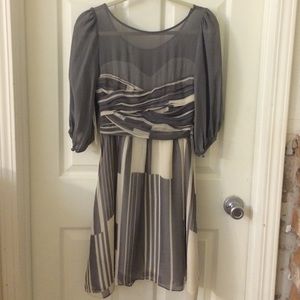 Moulinette Soeurs Sz 4P Gray Cream silk dress