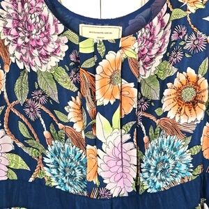 Moulinette Souers Anthropologie Mable Blue Silk Dress Small Floral Summer Lined