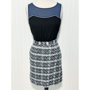 Moulinette Soeurs Women's Tweed Sleeveless Mini Dress Two-Tone Blue Black Size 2