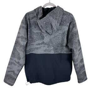 Excellent preowned condition. Gray camo softshell full zip fleece lined jacket. Zippered pockets on lower front sides. Polyester material. Approx. measurements: Shoulder to hem 27", pit to pit 22", sleeve from neck to sleeve hem 31". Men's Size M.