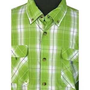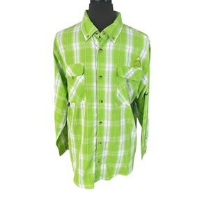 Mountain Club Outdoor Experience Mens XL Lime Grey Button Down Hiking Fishing