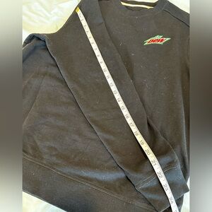 Mountain Dew Logo Embroidered Sweatshirt. Black Soft Pullover Long sleeve. Crew neck. The size and material tags have been removed so please see the pictures for measurements.