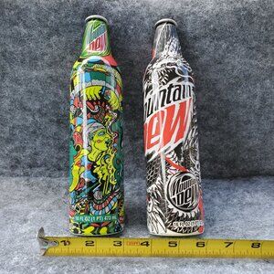 Mountain Dew Lot Of 2 Collectible Aluminum Bottles Psychedelic & Dragon Designs