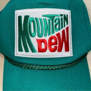 Mountain Dew Trucker Hat Vintage Retro Patch Kelly Green Rope Cap Soda Pop