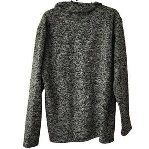 Mountain Expeditions Sweatshirt is a gray and white spacedyed pullover with a relaxed fit, mock neck, and 1/4 zip closure. Made of polyester, it is machine washable and features space-dyed pattern and zipper accents. Suitable for all seasons, it is ideal for outdoor sports activities such as hiking, running, and walking. Available in XL size, it is designed for men who prefer regular fit clothing.