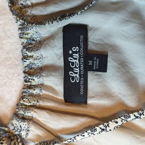 Length: Mid-thigh. Size S measures approximately 30" from adjustable straps to hem.