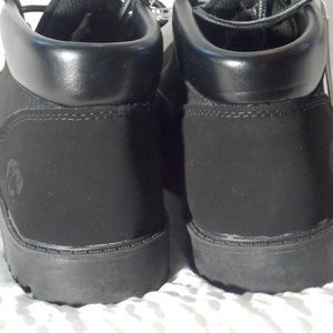 Condit/Discrpt} Boots are new with tags . Black vegan suede with style for any age. lace up the front with a faux leather cuff.