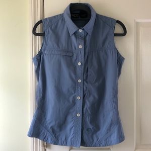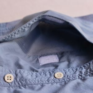 Button down shirt has collar that can be flipped up to provide protection for your neck from sun or wind.