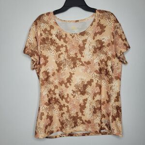 Mountain Hardware women's orange tone abstract print stretch short sleeve top Xl