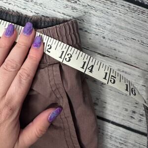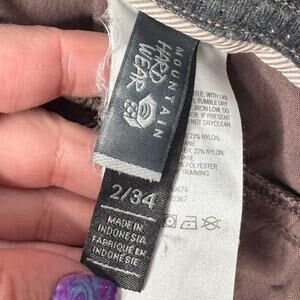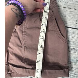 Mountain Hardwear shorts, women’s hiking shorts, outdoor active shorts, quick dry shorts, stretch travel shorts, brown cotton nylon blend, roll cuff shorts, adventure wear, women’s 2, camping shor