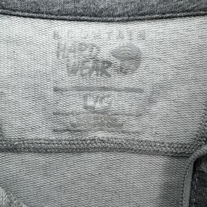 The Mountain Hardwear 3/4 Zip sweatshirt sweater in Men's size Large is a versatile and lightweight option for outdoor activities like hiking. Made from a tight-knit cotton blend fabric, this sweater features a solid gray color, mock neck neckline, and long sleeves for added warmth.