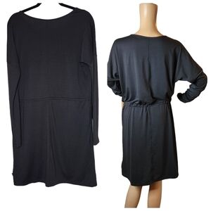 mountain Hardware black long sleeve active dress with adjustable drawstring waist and pockets. drape cowl neck
