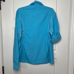 Mountain Hardwear Button Front Shirt Women's Size 8 Blue Outdoors Hiking Fishing
