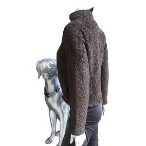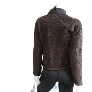 Mountain Hardwear Full Zip Fleece Brown Jacket with Zipped Pockets Womens Size M. Fleece is matted at sleeve hems - shown. Measurements: bust: 18, length: 19