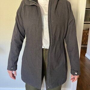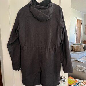 Very simple. Very flattering. Size large. I would keep it but it doesn't fit me any more. For reference, I am currently a size 14. This would fit best if you are size 10/12.