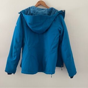 Women’s size medium blue jacket. Selling for a friend who wore it 2-3 days on one snowboard trip. Heavy duty, insulated. A few marks, pictured.
