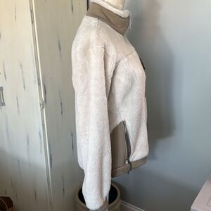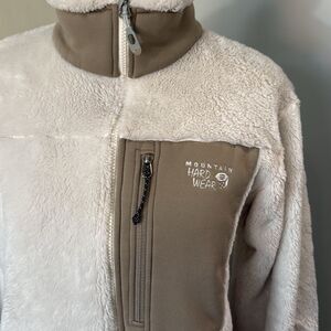 Mountain Hardwear Women’s jacket. Cream and Brown. Good used condition with some peeling on the inside and a patch of material on the back that feels matted. Please refer to pics. Very soft and warm casual jacket. From smoke free and pet friendly home.