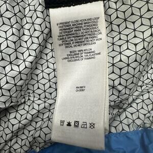Features: Full-zip front; drawcord hood; two zip hand pockets; adjustable hook-and-loop cuffs; hem drawcord with toggles; internal mesh drop pocket; breathable printed lining