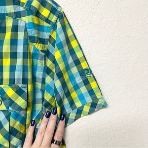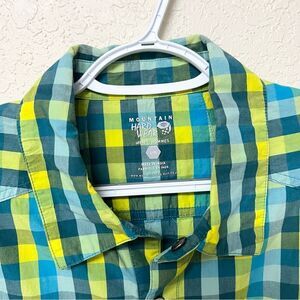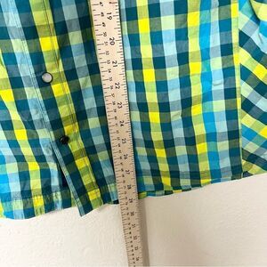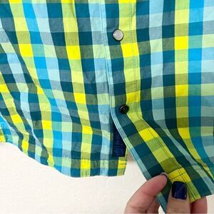 Mountain Hardwear Mens Blue Yellow Plaid Snap Button Up Short Sleeve Shirt Sz L