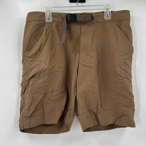 This is a pre owned Mountain Hardwear Mens Sz38 Brown Belted Hiking Cargo Shorts. This item is in good condition with the exception of a small spot on the right bottom. Please see pics.