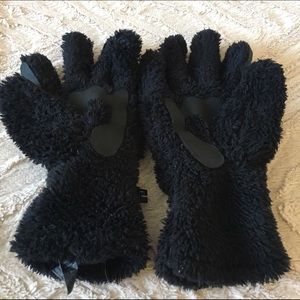 Black mountain hardwear "monkey" fleece gloves in women's size small. Only been worn a few times so the fleece is in excellent condition. However, there is a small tear along the seem on the pinky finger side of the right hand. Could easily be fixed-- see photo for details.