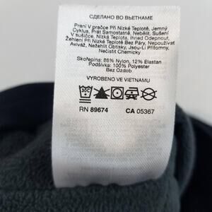 Mountain Hardwear Yumalina™ lined softshell pants in women’s size 12 Short. Black durable nylon-elastane shell with soft fleece lining for warmth on cold-weather hikes. Zip side pocket, straight leg, flat waistband. Style OL9873 (Yumalina™). Made in Vietnam. Excellent preowned condition, no flaws noted.
