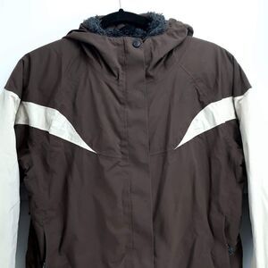 Mountain Hardwear Conduit Ski Jacket Coat Women’s M Brown Faux Fur Lined.