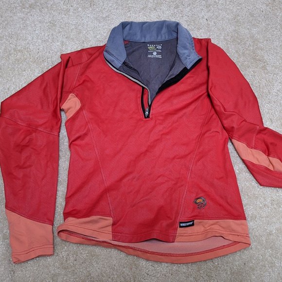 Brand new technical Windstopper outdoor shirt perfect for trail running, rock climbing, camping, hiking, biking, any outdoor adventure! Absolutely perfect condition with no stains or tears. ½ zip top with bright red pattern.