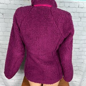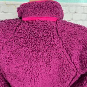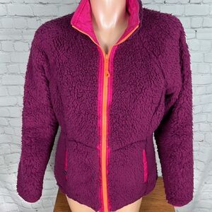 Zig zag puffy vest reverses to maroon pile fleece in very good condition