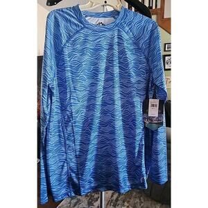 This Mountain & Isles shirt is perfect for any outdoor activity, whether it's a run on the beach or a casual day out. The shirt is made of lightweight and breathable polyester material that provides UV protection and quick-drying capabilities. It features a crew neck and long sleeves, and comes in a solid blue color.