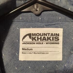 Mountain Khakis Chambray White Dot Button Down Shirt Women's Size Medium. Such a well-made shirt. Armpit to armpit measures 22.5" 100% Cotton. Pre-owned, this shirt is in excellent condition.