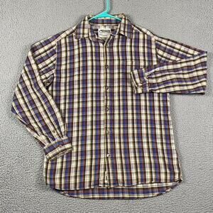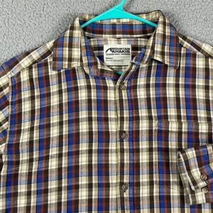 Mountain Khakis Flannel Shirt Men's Medium Plaid Blue Brown Tan Button Up