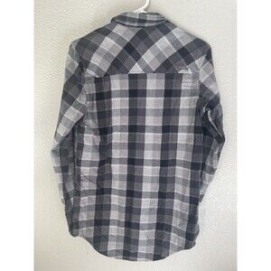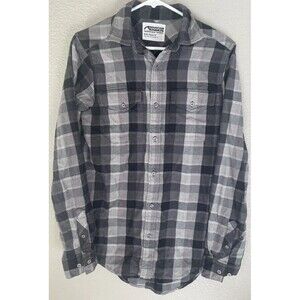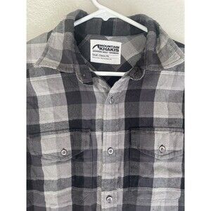 Mountain Khaki Flannel Shirt Mens Small Button Up Shirt Black Gray Plaid.