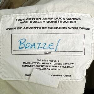 The previous owner's name is written on the interior name patch (see photo). This is not visible when worn.