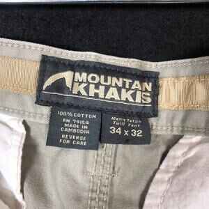 Mountain Khakis Mens Tan Teton Twill 100% Cotton Straight Leg 34x32 (33x31) minor stain on leg (pictured)