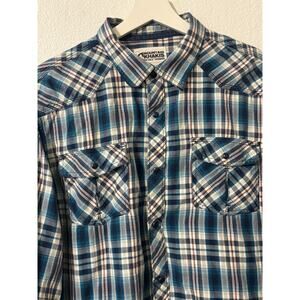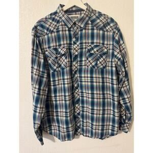 Mountain Khakis Men's Western Snap Long Sleeve Button Down Shirt Blue Plaid XL
