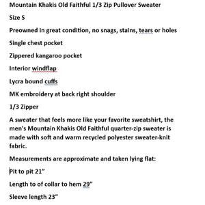 Mountain Khakis Old Faithful 1/3 Zip Pullover Sweater - Size S