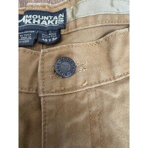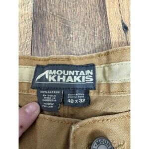 These Mountain Khakis pants are perfect for any outdoor adventure or casual wear. Made from durable 100% cotton canvas fabric, these pants feature a mid-rise waist and straight leg style with a flat front. The beige color with Mountain Khakis logo accents and pocket types of cargo and slash pockets make these pants suitable for travel, casual, and workwear occasions.