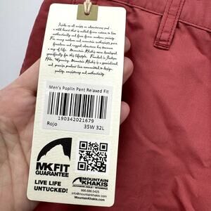 Mountain Khakis Pants Mens 35x32 ACTUAL Poplin Pant Relaxed Fit Rojo Red NEW