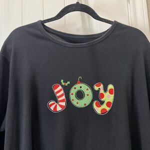 Mountain Lake Black Red Joy Embroidered Spellout Christmas Shirt Womens Size 2X