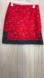 Mountain Lake Casuals Petite red skirt w/paisley & crowns or whatever it is all over it. The print is either black or Navy Blue it has white polka dots on the bottom trim there are little slits on each side & a zipper closure on the side.