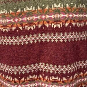 Mountain Lake Fair Isle Turtleneck Sweater PM Green Burgundy Ramie Cotton