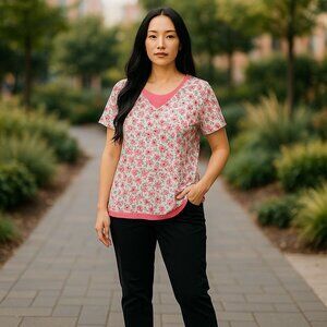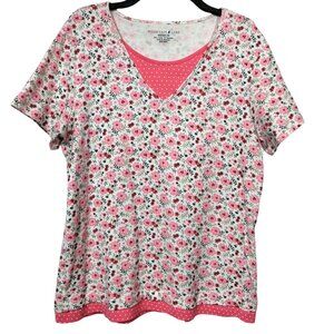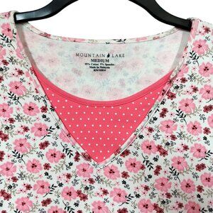 Mountain Lake Floral Short Sleeve T-shirt Layered Look Pink White Size Medium