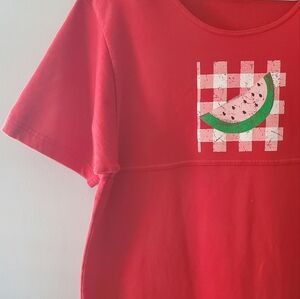 Mountain Lake Vintage Red Appliqued Maxi Tee Shirt Dress Size Petite Large