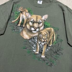 Mountain Lion Forest Green Nature Animals Graphic Shirt XL