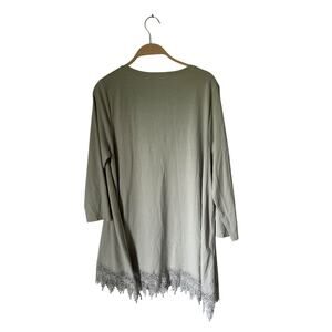 Mountain Mamas Gray Tunic 3/4 Sleeves With Crochet Hem XXL Fall Shirt